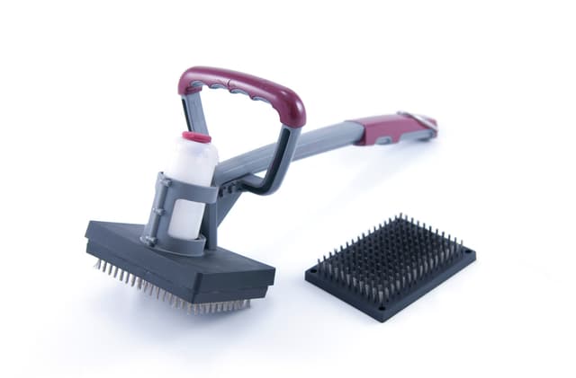 Grill-höyrypuhdistusharja käyttää höyrypuhdistustehoa grilliristin syventämiseksi. Harjalla on ruostumattomasta teräksestä valmistetut harjakset ja toinen kahva parempaan vipuvaikutukseen. Näkyy vaihto-harjalla (ei sisälly toimitukseen).