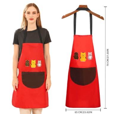 Tyylikäs ja mukava: Toiminnallisten etujensa lisäksi tässä hihattomassa esiliinassa on tyylikäs muotoilu, joka lisää ripauksen eleganssia keittiöasuusi. Eloisa punainen väri ja tyylikäs siluetti luovat modernin ja hienostuneen ilmeen. Hihaton muotoilu mahdollistaa rajoittamattoman liikkumisen, mikä takaa maksimaalisen mukavuuden pitkäaikaisessa käytössä. Kevyt polyesterimateriaali on hengittävää ja hellävaraista iholle estäen ylikuumenemisen ja ärsytyksen. Olitpa ammattikokki tai kotikokki, tämä esiliina pitää sinut hyvännäköisenä ja -oloisena samalla kun luot kulinaarisia mestariteoksia. Se on täydellinen yhdistelmä tyyliä ja toimivuutta kaikille keittiöharrastajille.