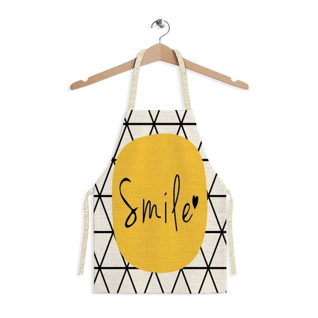 Tyylikäs ja moderni: Tämä moderni geometrinen painettu esiliina kohottaa keittiö- tai taidestudiokokemustasi. Sen huomiota herättävä muotoilu tuo ripauksen hienostuneisuutta päivittäisiin askareisiisi, tehden siitä muodikkaan ja käytännöllisen lisävarusteen. Geometrinen kuvio on huolellisesti suunniteltu tarjoamaan visuaalisesti houkutteleva esteettisyys, varmistaen, että näytät hyvältä ruoanlaitossa, maalaamisessa tai muussa luovassa toiminnassa. Tämä esiliina on täydellinen niille, jotka arvostavat sekä tyyliä että käytännöllisyyttä jokapäiväisissä tarvikkeissaan. Sen ainutlaatuinen muotoilu tekee siitä erottuvan osan, parantaen yleisilmettäsi ja lisäten ripauksen persoonallisuutta työasuusi. Moderni geometrinen painatus tekee varmasti vaikutuksen ja saa sinut tuntemaan olosi itsevarmaksi ja tyylikkääksi.
