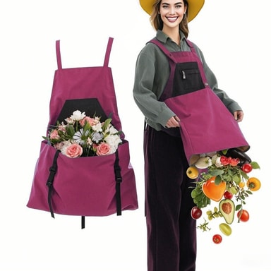 Kädet vapaana sadonkorjuu: Koe vertaansa vailla olevaa mukavuutta puutarhaesiliinallamme. Tämä esiliina on suunniteltu pitämään kätesi vapaina sadonkorjuun aikana, ja sen avulla voit liikkua puutarhassasi helposti. Sinun ei enää tarvitse jonglöörata työkaluilla tai tuotteilla – kerää sadon suoraan esiliinan tilavaan pussiin. Innovatiivinen muotoilu varmistaa, että hedelmät, vihannekset tai kukat säilytetään turvallisesti, mikä estää mustelmia tai vaurioita. Nauti tehokkaammasta ja nautinnollisemmasta puutarhanhoitokokemuksesta tällä olennaisella työkalulla.