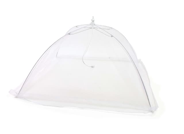 Älä anna ärsyttävien hyönteisten pilata grilliäsi tai piknikiasi! Nämä kätevät, kevyt teltat suojaavat ruokaa vikojen varalta. Teltat on valmistettu valkoisesta nailonverkkokangasta ja niissä on vetokaapeli, joka lukitsee ne avoimessa asennossa. Tämä tuote romahtaa helposti säilytettäväksi ja se on saatavana kolmessa eri koossa.