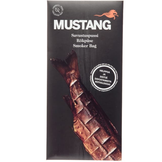 Laita raaka-aineet Mustang Alder -savustuspussiin ja laita pussi uuniin. Savustuspussissa on 20 g Alder-savustuslastuja erillisessä osiossaan. Pussi on suunniteltu kalan, lihan ja kasvisruokien valmistukseen uunissa sekä hiili- tai kaasugrillissä.