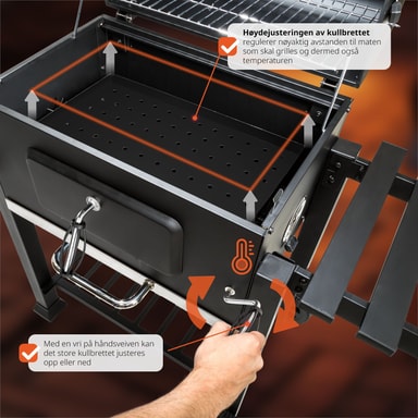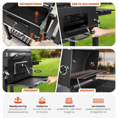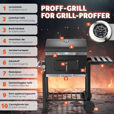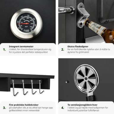 Haluatko aloittaa grillikauden älykkäällä hiiligrillillä? Ammattilaishiiligrilli Florian on todellinen sensaatio, jossa on paljon fiksuja lisäosia. Näin grillaaminen on paljon hauskaa! Jopa olutpullojen nopea avaaminen on taattu kiinteällä integroidulla pullonavaajalla. Kokoontaitettava sivuhylly ei toimi ainoastaan ainesten säilytystilana, vaan sen sivussa on myös hyödylliset koukut, joiden avulla grillipihdit pysyvät lähellä. Täydellisen grillauslämpötilan saavuttamatta jättäminen on myös menneisyyttä lämpömittarin ansiosta. Puuhiiligrillissä on myös erittäin suuri lämmitysalue. Grillauslämpötila on säädettävissä, sillä suuri hiilikaukalo on säädettävissä korkeussuunnassa kampiohjaimella. Tuhka-astia sijaitsee hiilikaukalon alla. Näin grillin puhdistaminen on todella helppoa. Muita kohokohtia ovat hyödyllinen alahylly sekä 2 pyörää, jotka takaavat helpon kuljetuksen. Hanki tämä grillivelho kotiisi jo tänään.