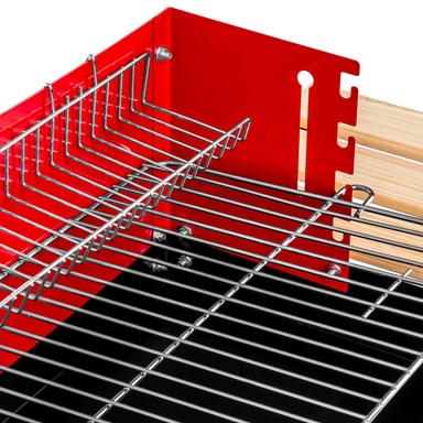 Tectaken siirrettävällä BBQ-grillillä olet hyvin varustautunut grillijuhliin. Olipa kyseessä sitten puutarha, ranta tai retkeily. Kaksi hyllyä ovat sivultaan puuta ja pohjat ovat metallia, mikä tekee niistä erityisen käteviä. Siellä tavarasi ovat aina heti käden ulottuvilla. Suuri grilliritilä tarjoaa runsaasti tilaa maukkaille grilliherkuille. Lisäksi grillissä on lämpöä pidättävä kori. Voit laittaa siihen jo grillattua lihaa tai käyttää sitä vihannesten tai kalan hitaaseen kypsentämiseen. BBQ-grilli on liikuteltavissa kahden pyöränsä ansiosta, ja sitä voi siirtää halutessaan. Tilaa tämä käytännöllinen BBQ-grilli tectakelta jo tänään.