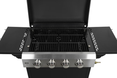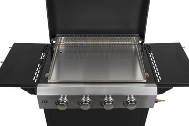 FCC BBQ Fry 4 -kaasugrillissä on 4 tehokasta ruostumattomasta teräksestä valmistettua poltinta, jotka tuottavat korkean lämmön. Valitse ruostumattomasta teräksestä valmistettu paistolevy tai emalipäällysteinen valurautainen grilliritilä.Tutustu ominaisuuksiin