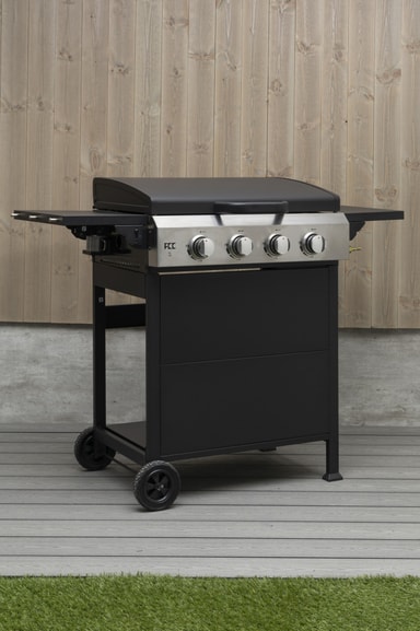 FCC BBQ Fry 4 -kaasugrilli tarjoaa joustavuutta ja tehoa kaasugrillissä. Fry on plancha-grilli, joka antaa sinulle täyden hallinnan kypsennysprosessista ja sopii kaikenlaisille grillattaville tai paistettaville ruoille. Neljän tehokkaan ruostumattomasta teräksestä valmistetun polttimen ansiosta saat tasaisen lämmönjakautumisen ja korkean suorituskyvyn joka kerta. Mukana toimitettava ruostumattomasta teräksestä valmistettu plancha-levy voidaan helposti vaihtaa emaloituihin valurautaisiin grilliritilöihin, jolloin voit vaihdella klassisen grillauksen ja täydellisen paistamisen välillä. Paistinpannussa on matala kansi, joka varmistaa nopeamman lämmityksen ja tehokkaan lämmön heijastamisen. Kaksi alas taittuvaa sivupöytää tarjoavat lisää työtilaa tarvittaessa, ja käytännöllisten työkalukoukkujen ansiosta työvälineet ovat aina käden ulottuvilla.