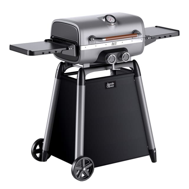 Muotoilu: Jamie Oliver tuntee ruoanlaiton kuin omat taskunsa. Huippukokin inspiroima grilli on taatusti laadukas ja siinä on hyödyllisiä ominaisuuksia, kuten sisäänrakennettu lämpömittari ja kätevät pyörät.
