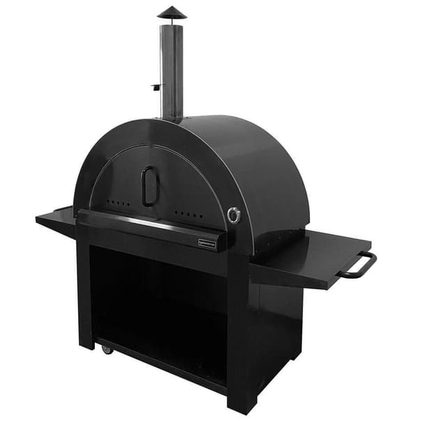 Puilla lämpiävä pizzauuni • Väri: antrasiitti • Materiaali: Ruostumaton teräs 304 SS • Polttoaine: Polttopuut • Lämpömittari edessä • Puukahva kannessa • Säilyttää lämmön uskomattoman hyvin • Lämpötila: 350 °C 5 minuutissa ja 500 °C 15 minuutissa • Ruoka valmistetaan tulenkestävän tiilen päällä • Paistoala: 105x56,5 cm • Paistoalan materiaali: elintarvikekäyttöön hyväksyttyä kordieriittia, joka kestää pitkään käytössä ja säilyttää lämmön hyvin. • Vapaasti seisova pizzauuni, joka sopii kaikkiin ulkotiloihin – helppo siirtää ja sijoittaa. • 4 pyörää • 2 x sivupöytä ruostumatonta terästä • Uunin alla on kätevä ruostumattomasta teräksestä valmistettu teline polttopuita varten • Mukana korkea ruostumattomasta teräksestä valmistettu savupiippu • Mitat (leveys x korkeus x syvyys): 190,5x187x72,5 cm • Paino: 74,3 kg