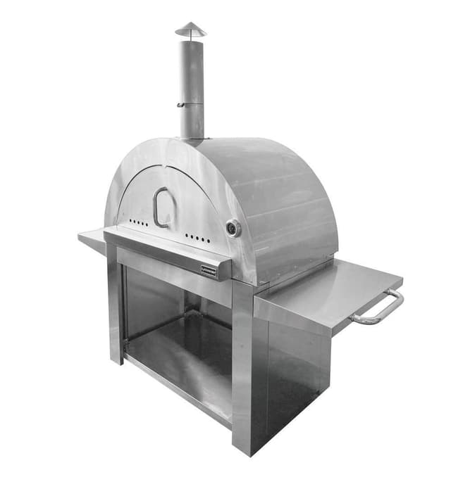 Puilla lämpiävä pizzauuni • Väri: Ruostumaton teräs • Materiaali: Ruostumaton teräs 304 SS • Polttoaine: Polttopuut • Lämpömittari edessä • Puukahva kannessa • Säilyttää lämmön uskomattoman hyvin • Lämpötila: 350 °C 5 minuutissa ja 500 °C 15 minuutissa • Ruoka valmistetaan tulenkestävän tiilen päällä • Paistoala: 105x56,5 cm • Paistoalan materiaali: elintarvikekäyttöön hyväksyttyä kordieriittia, joka kestää pitkään käytössä ja säilyttää lämmön hyvin. • Vapaasti seisova pizzauuni, joka sopii kaikkiin ulkotiloihin – helppo siirtää ja sijoittaa. • 4 pyörää • 2 x sivupöytä ruostumatonta terästä • Uunin alla on kätevä ruostumattomasta teräksestä valmistettu teline polttopuita varten • Mukana korkea ruostumattomasta teräksestä valmistettu savupiippu • Mitat (leveys x korkeus x syvyys): 190,5x187x72,5 cm • Paino: 74,3 kg