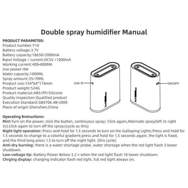 Suuri kapasiteetti, pitkäkestoinen: 1 litran vesisäiliö takaa pitkän käyttöajan ja vähentää täyttökertoja. 2000 mAh:n akulla tämä ilmankostutin tarjoaa tuntikausia käyttöaikaa, mikä tekee siitä täydellisen yö- tai pitkiin työpäiviin. Nauti tasaisesta kosteudesta ja ilmanpuhdistuksesta ilman toistuvia keskeytyksiä. Ihanteellinen makuuhuoneisiin, toimistoihin tai matkoille, tämä ilmankostutin tarjoaa kätevän ja tehokkaan ratkaisun optimaalisen kosteustason ylläpitämiseen ja ilmanlaadun parantamiseen. Suuri kapasiteetti ja pitkä akunkesto tekevät siitä luotettavan valinnan mukavan ympäristön luomiseen missä tahansa, varmistaen, että voit hengittää helpommin ja tuntea olosi virkeäksi koko päivän.