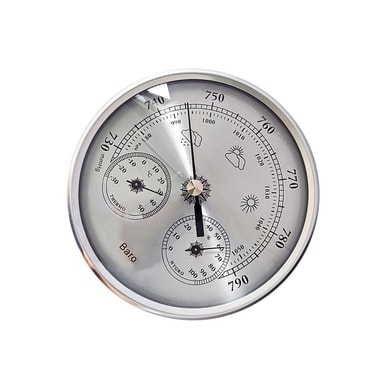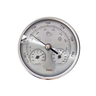 3-in-1 functionality: Tämä analoginen barometri yhdistää kolme olennaista säänseurantatyökalua yhteen tyylikkääseen laitteeseen. Se mittaa tarkasti ilmanpainetta, lämpötilaa ja kosteutta tarjoten kattavan yleiskuvan vallitsevista ilmakehän olosuhteista. Integroitu lämpömittari näyttää lämpötilan sekä Celsius- että Fahrenheit-asteina, kun taas kosteusmittari ilmaisee suhteellisen kosteuden. Tämä 3-in-1-toiminnallisuus eliminoi useiden instrumenttien tarpeen, säästää tilaa ja tarjoaa kätevän ratkaisun kodin säänseurantaan. Täydellinen harrastajille, puutarhureille ja kaikille, jotka ovat kiinnostuneita seuraamaan ympäristön muutoksia. Tämä barometri on arvokas lisä mihin tahansa kotiin tai toimistoon tarjoten näkemyksiä tulevista säämalleista ja varmistaen mukavan sisäympäristön. Sen tarkat mittaukset ja selkeä näyttö tekevät siitä välttämättömän työkalun jatkuvasti muuttuvan ilmakehän ymmärtämiseen ja siihen reagoimiseen.