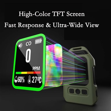 Tarkka CO-pitoisuuden mittaus: Tämä kannettava hiilimonoksidi-ilmaisin tarjoaa tarkan ja luotettavan CO-pitoisuuden mittauksen välillä 0–1000 ppm. Se on välttämätön turvallisuuden varmistamiseksi kodeissa, toimistoissa ja ajoneuvoissa, varoittaen mahdollisesti vaarallisista hiilimonoksiditasoista. Laite havaitsee nopeasti jopa pienet muutokset CO-tasoissa, antaen sinulle runsaasti aikaa reagoida ja ehkäistä terveysriskejä. Käytä sitä autotallissasi, polttoainetta käyttävien laitteiden lähellä tai telttaillessa ilmanlaadun seuraamiseen ja itsesi ja perheesi suojelemiseen hiilimonoksidimyrkytyksen vaaroilta. Tämä ilmaisin on välttämätön kaikille, jotka ovat huolissaan sisäilman laadusta ja turvallisuudesta.