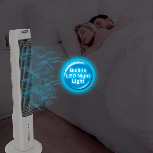 Arctic Air Towerissa on iso ja tilava vesisäiliö, joka kestää jopa 10 tuntia täyttöä kohti.Pyörimistoiminto ohjaa ilmanvirtausta.Arctic Air Towerissa on sisäänrakennettu LED-lamppu pehmeällä valolla, joka sopii yövaloksi.