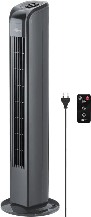 Tässä tehokkaassa kauko-ohjattavassa tornituulettimessa on 50 W:n sähkömoottori ja se tarjoaa tasaisesti jakautuneen ilmanvaihdon 3 eri tasolla ja eri asennoissa kääntötoiminnon ansiosta.