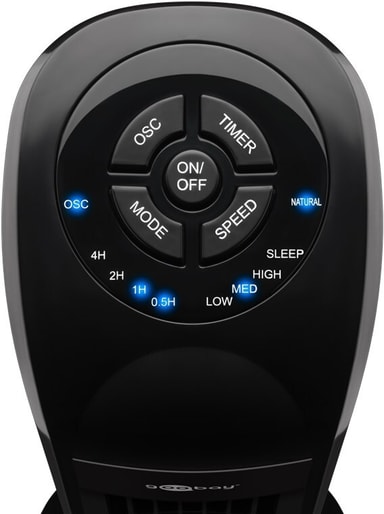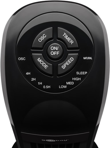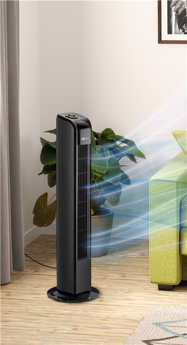 Tässä tehokkaassa kauko-ohjattavassa tornituulettimessa on 50 W:n sähkömoottori ja se tarjoaa tasaisesti jakautuneen ilmanvaihdon 3 eri tasolla ja eri asennoissa kääntötoiminnon ansiosta.