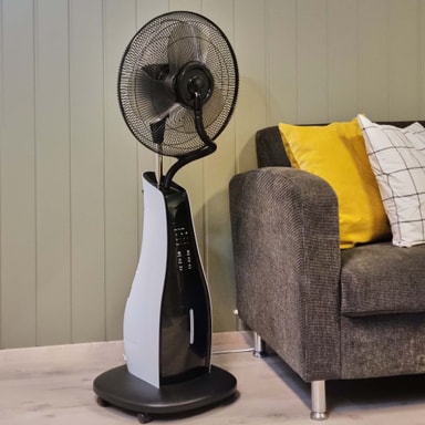 Cool Down on tuuletin, jossa on sisäänrakennettu ilmankostutin, joka tarjoaa virkistävää, kosteaa ja viilentävää ilmaa. Täydellinen tuote kuumille kesäpäiville! Voidaan käyttää sekä terassilla että sisätiloissa. Älykäs 2-in-1-ratkaisu, joka jäähdyttää jopa mukavammin kuin tavallinen tuuletin.