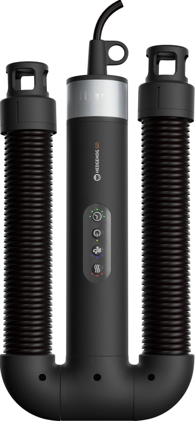 Hedgehog GO Black Ionic-kenkäkuivain on kompakti, monikäyttöinen kuivain, joka on suunniteltu matkakäyttöön. Se kuivaa nopeasti saappaat, käsineet ja hiukset ja täyttää jopa ilmapatjat. Tehokas mutta helposti mukana kulkeva laite toimitetaan adaptereiden ja seinätelineen kanssa, jotta käyttö on vaivatonta missä tahansa.
