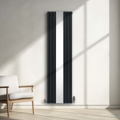 Tuo kotiisi lämpöä huippuluokan antrasiitinharmaalla soikealla paneelilla pystysuoralla jäähdyttimellämme, jossa on tyylikäs keskipeili – täydellinen sekoitus ajatonta eleganssia ja modernia tehokkuutta.