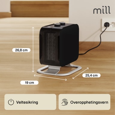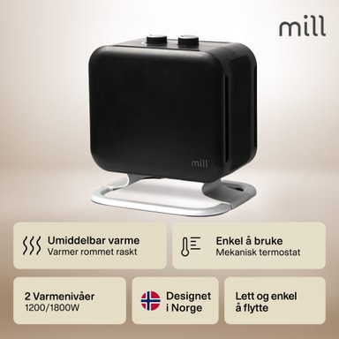 Mill Compact -lattialämmitin on solakka ja kannettava lämmitin, joka sopii makuuhuoneisiin tai vierashuoneiden nurkkiin. 1800 W teholla se lämmittää jopa 30 m2 tilat ja tarjoaa lisäksi kaksi tehoasetusta mukavuuden mukauttamiseen.Tutustu ominaisuuksiin