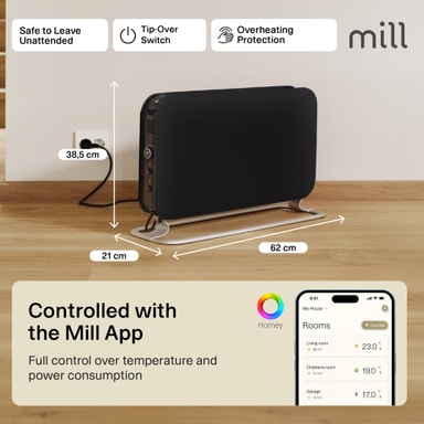 Mill Wi-Fi -lattialämmitin on tyylikäs, kannettava lämmitin, joka on suunniteltu lämmittämään tilaasi tehokkaasti. 1200 W tehonsa ansiosta se sopii täydellisesti jopa 18 m2 huoneisiin. Yhdistä se Mill-sovellukseen henkilökohtaiseen lämpötilan säätöön ja nauti kodikkaasta tunnelmasta ympäri vuoden.