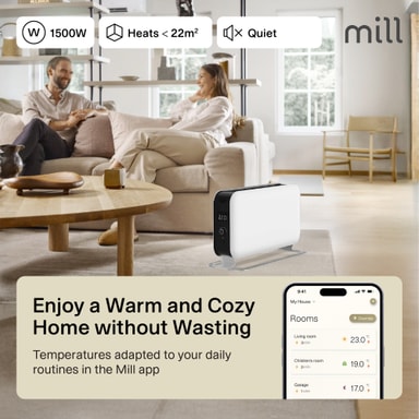 Mill Wi-Fi Max -lattialämmitin on tyylikäs, kannettava lämmitin, joka on suunniteltu lämmittämään tilaasi tehokkaasti. 1500 W tehonsa ansiosta se sopii täydellisesti jopa 22 m2 huoneisiin. Yhdistä se Mill-sovellukseen henkilökohtaiseen lämpötilan säätöön ja nauti kodikkaasta tunnelmasta ympäri vuoden.