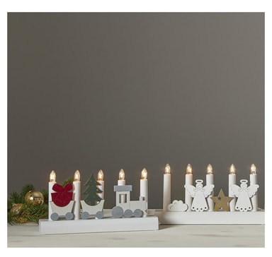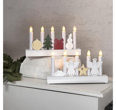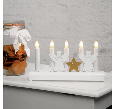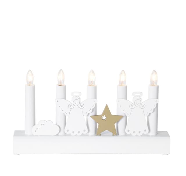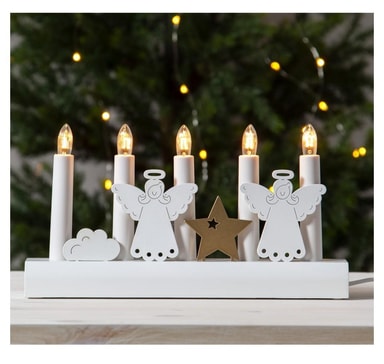 Kynttelikkö JULIA 5-LED 28xH15cm, enkelit, puinen, valkoinen