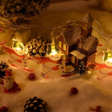 1,5 m 10 LED-valoa Joulupukki Lumiukko Joulunauhavalo Joulupukin koristenauhavalo - Hiihto lumiukkoVirtalähde: Tämä merkkijono saa virtansa 2 x AA-paristosta (eivät sisälly)Helppokäyttöinen: Ei asennusta ja huoltoa, voit sijoittaa tämän jouluvalonauh