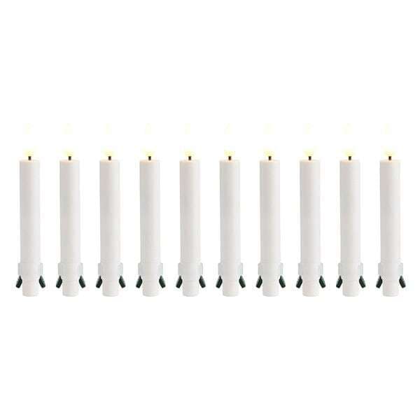 Koristele kotisi näillä Dayn valkoisilla keinotekoisilla joulukuusenkynttilöillä. Tyylikäs ja paloturvallinen vaihtoehto oikeille kuusenkynttilöille, joka lisää viihtyisyyttä joulukuusessasi. 3D-liekillä varustetun LED-valon ansiosta saat kokea saman lämpimän kodikkaan valon kuin eläviä kynttilöitä käytettäessä. Täydellinen sinulle, joka haluat välttää tulipalon vaaran tai joilla on kotona lapsia ja lemmikkieläimiä.