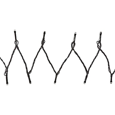 Kaapelin musta väri sopii hyvin kaikkiin puihin ja taustoihin häiritsemättä silmää. 10 metrin pituisessa valoköynnöksessä on yhteensä 100 LED-valoa, jotka on asetettu 10 senttimetrin välein. Virtajohto on yhteensä 5 metriä pitkä, joten pituudesta ei ole pulaa. Tämä on erittäin kätevää, jos pistorasia on hieman kauempana. Valoköynnöstä voi käyttää sekä sisä- että ulkotiloissa.