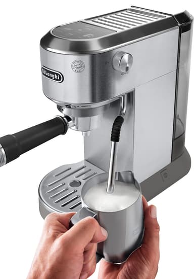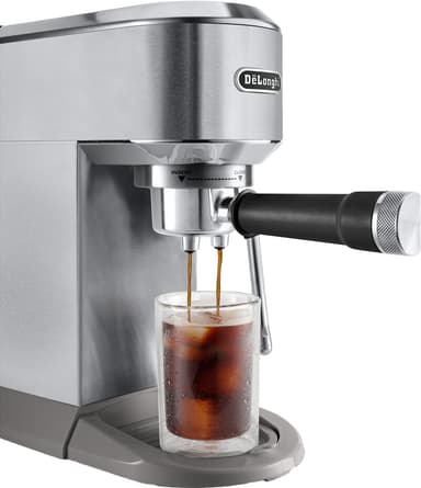 Valmista kuumia ja kylmiä juomia De'Longhi Dedica -kahvikoneella. Tässä manuaalisessa kahvikoneessa on 1,1 litran vesisäiliö ja kosketuskäyttöliittymä, jonka avulla voit valita espresso-, tuplaespresso- ja kylmäuuttovaihtoehdot.Tutustu ominaisuuksiin