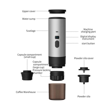 Akun tarjoama mukavuus: Ladattavalla akulla toimiva kannettava kapselikahvinkeitin tarjoaa johdottoman käytön äärimmäisen mukavuuden takaamiseksi. Täysi lataus mahdollistaa useita kahvinvalmistusjaksoja, mikä tekee siitä ihanteellisen matkoille ja ulkoiluun. Laite on yhteensopiva USB-latauksen kanssa, joten voit ladata sen eri virtalähteistä. Kompakti muotoilu ja kevyt rakenne tekevät siitä helpon kuljettaa laukussa tai repussa. Akun tarjoama käyttö eliminoi pistorasioiden tarpeen, mikä tarjoaa vapautta ja joustavuutta kahvinvalmistuspaikoissa. Yhteensopiva tavallisten kapseleiden kanssa, se on täydellinen ratkaisu liikkeellä oleville kahvin ystäville.