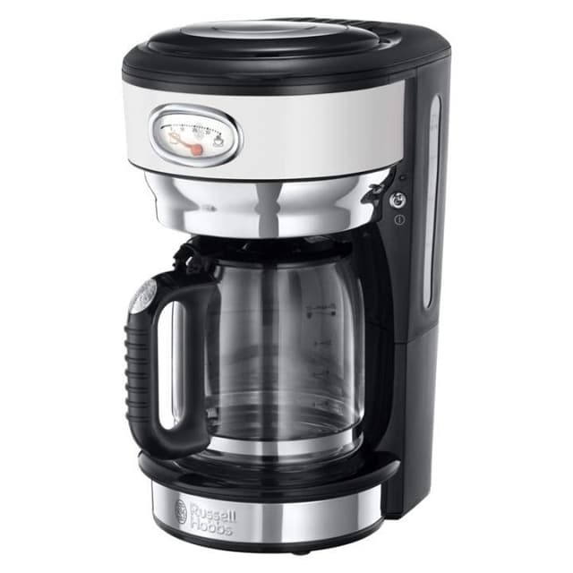 Russell Hobbs Retro Classic Blanc -kahvinkeitin on välttämätön jokaisen kahvia rakastavan keittiössä. Tyylikäs retro-muotoilun lisäksi kahvinkeittimessä on useita edistyneitä ominaisuuksia, jotka antavat sinulle paremman kokemuksen ja parantavat kahvin makua. Kahvinkeitin käyttää kehittynyttä tekniikkaa veden leviämiseen suuremmalle alueelle suodattimessa, mikä tarkoittaa, että enemmän makua seuraa kannuun *. Haluatpa voimakkaita tai mietoja makuja, tämä kahvinkeitin valmistaa kahvin juuri haluamallasi tavalla. Pidä lämpimänä -toiminto tarkoittaa myös sitä, että toinen tai kolmas kuppi on yhtä höyryinen kuin ensimmäinen. Retro-muotoinen mittari ei ole vain hieno yksityiskohta, vaan kertoo myös kuinka paljon aikaa on jäljellä ennen kahvin valmistamista. Kun kahvi on valmis, se näyttää kuinka kauan kahvia voidaan juoda menettämättä makua tai katkeruutta. Toiminto ""tauko ja kaada"" on tarkoitettu sinulle, joka haluaa kupin, mutta ei voi odottaa, että kaikki kahvi on valmis, ja vähentää sitten vuotoa ja tippumista. Yksinkertaisuuden vuoksi pakkaukseen sisältyy käytännöllinen kahvimittari, mikä tarkoittaa, että saat oikean määrän valmistettavien kuppien määrään.