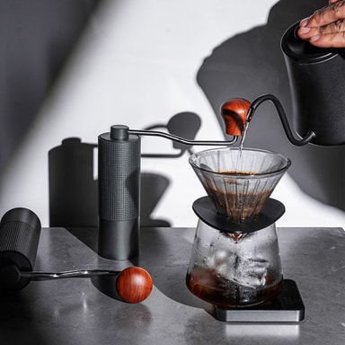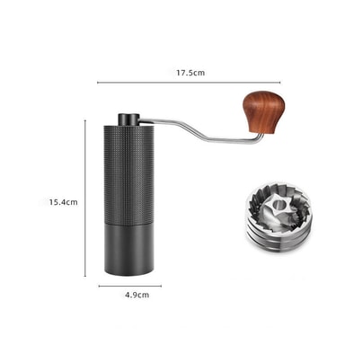 Vaivaton jauhatus: Kaksoislaakerirakenne varmistaa tasaisen ja vaivattoman jauhatuksen, estäen papujen juuttumisen ja tarjoten mukavan jauhatuskokemuksen. Ergonominen puukahva tarjoaa turvallisen ja mukavan otteen, jonka avulla voit jauhaa kahvipapusi helposti. CNC-koneistettu terässydän leikkaa pavut nopeasti ja tehokkaasti, vähentäen halutun jauhatusasteen saavuttamiseen tarvittavaa vaivaa. Nauti vaivattomasta jauhatusprosessista ja nauti vastajauhetun kahvin aromista.