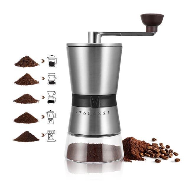 Tarkka jauhatuksen säätö: Saavuta täydellinen kahvijauhatuksen koostumus 8-vaiheisesti säädettävällä keraamisella ytimellämme. Säädä jauhatus karkeasta hienoon sopivaksi haluamaasi valmistusmenetelmään, olipa kyseessä pressopannu, suodatinkahvi, espresso tai mikä tahansa siltä väliltä. Tämä manuaalinen mylly varmistaa tasaisen ja maukkaan uuton joka kerta, avaten suosikkikahvipapujesi täyden potentiaalin. Nauti rikkaammasta ja vivahteikkaammasta kahvikupista jokaisella keitolla myllymme tarjoaman tarkan hallinnan ansiosta.