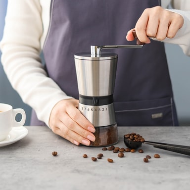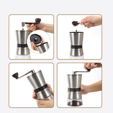 Kannettava ja manuaalinen: Ei tarvita paristoja tai sähköä! Tämä käsikäyttöinen kahvimylly on täydellinen kotiin, toimistoon, matkoille tai retkeilyyn. Sen kompakti muotoilu tekee siitä helpon pakata ja kuljettaa, joten voit nauttia vastajauhetusta kahvista missä tahansa. Manuaalinen käyttö antaa sinulle täydellisen hallinnan jauhatusprosessiin, tarjoten tyydyttävän ja mukaansatempaavan kahvinvalmistuskokemuksen. Omaksu manuaalisen jauhamisen taito ja nauti vastajauhetun kahvin aromista ja mausta riippumatta siitä, missä olet.