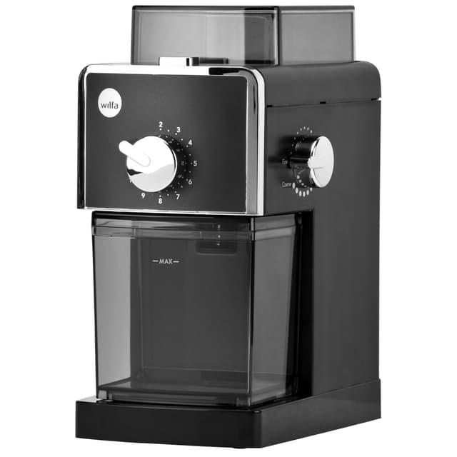 Wilfa kahvimyllyn ansiosta voit nauttia entistä herkullisempaa ja tuoreempaa kahvia. Myllyssä on tilaa 180 grammalle papuja ja sen kapasiteetti riittää jauhamaan 2-12 kupillista kahvia. Laitteessa on lisäksi johdon säilytystila ja automaattinen lopetustoiminto.