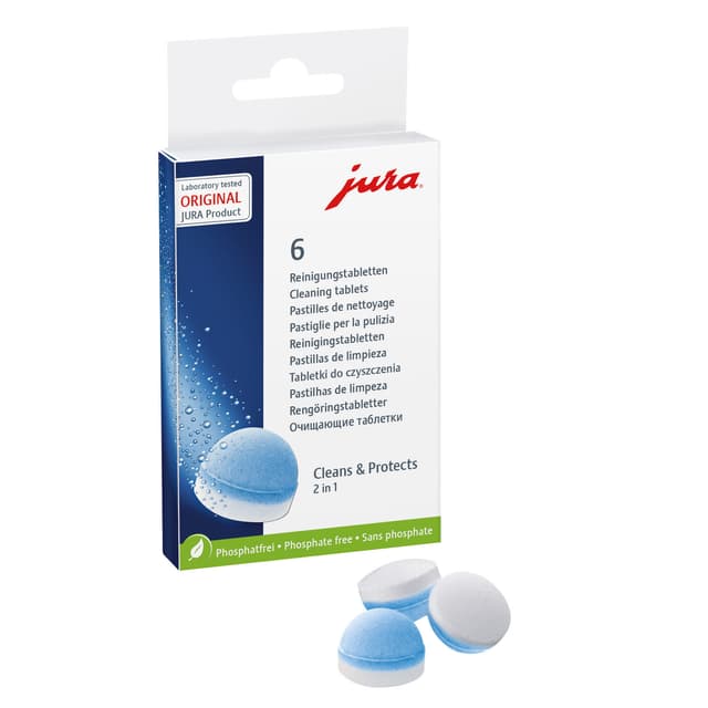Kahvilaitteen puhtaus on tärkeää kahvin hyvän maun takaamiseksi. Kaksivaiheiset JURA 62715 -puhdistustabletit pitävät kahvikoneesi puhtaana ja suojaavat lisäksi laitetta. Tabletit eivät sisällä fosfaattia. Suunniteltu erityisesti JURA-kahvikoneille, mutta sopii käytettäväksi myös muissa automaattisissa kahvikoneissa.