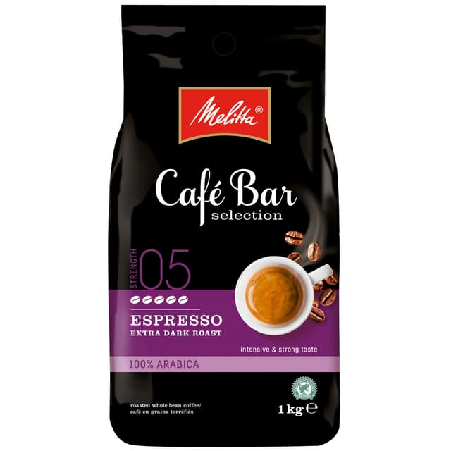 Valmista täydellisen intensiivistä ja mausteista espressoa Melitta CaféBar Espresso -kahvipavuista. Pavut ovat 100% Arabica-papuja sekä Rainforest Alliance -sertifioituja.