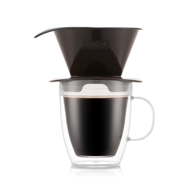 Kahviekspertit arvostavat käsinsuodatettua kahvia vahvan aromin sekä pehmeän ja täyteläisen maun vuoksi. Mutta joskus sitä kaipaa vain yhtä kahvikupillista, eikä ole tarvetta valmistaa täyttä pannullista. Sellaisina hetkinä ota esiin Bodumin POUR OVER -suodatinsuppilo ja kaksiseinäinen muki.