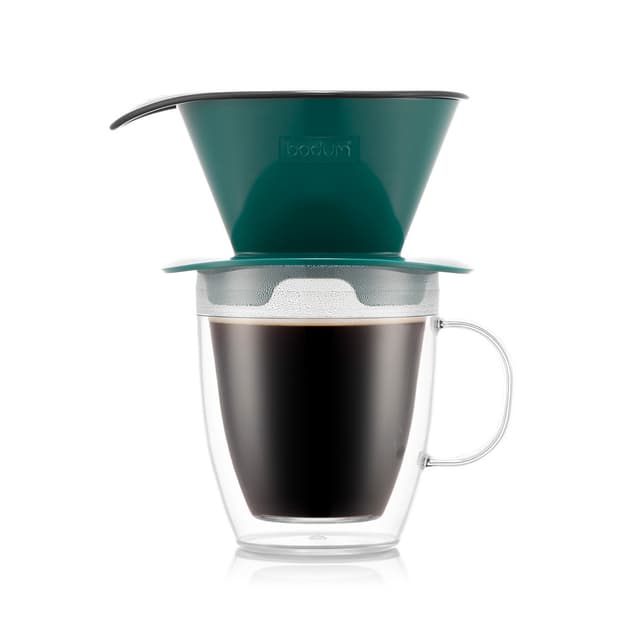 Kahviekspertit arvostavat käsinsuodatettua kahvia vahvan aromin sekä pehmeän ja täyteläisen maun vuoksi. Mutta joskus sitä kaipaa vain yhtä kahvikupillista, eikä ole tarvetta valmistaa täyttä pannullista. Sellaisina hetkinä ota esiin Bodumin POUR OVER -suodatinsuppilo ja kaksiseinäinen muki.