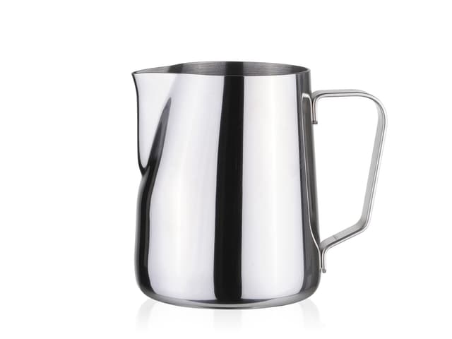 Milk jug - 350 ml in stainless steel. The jug has a perfect shape for steaming/frothing milk for coffee beverages such as cappuccino and latte, and the spout is ideal for creating the beautiful patterns in the foam that we know from cafés. The jug ca