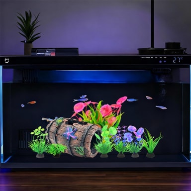 Monipuolinen ja helppo asennus: Tämä 12-osainen akvaarion koristelusetti on uskomattoman monipuolinen ja helppo asentaa mihin tahansa akvaarioon. Setti sisältää erilaisia koriste-elementtejä, jotka voidaan järjestää luomaan ainutlaatuinen ja henkilökohtainen vedenalainen maisema. Hartsitynnyrin piilopaikka tarjoaa keskipisteen akvaarioosi, kun taas keinotekoiset kasvit lisäävät väriä ja tekstuuria. Koristeet ovat kevyitä ja helppoja sijoittaa, jolloin voit luoda visuaalisesti houkuttelevan ympäristön muutamassa minuutissa. Soveltuu makean veden ja suolaisen veden akvaarioihin, tämä setti on täydellinen valinta sekä aloittelijoille että kokeneille akvaarioharrastajille. Nauti kukoistavan akvaarion kauneudesta ilman elävien kasvien vaivaa.