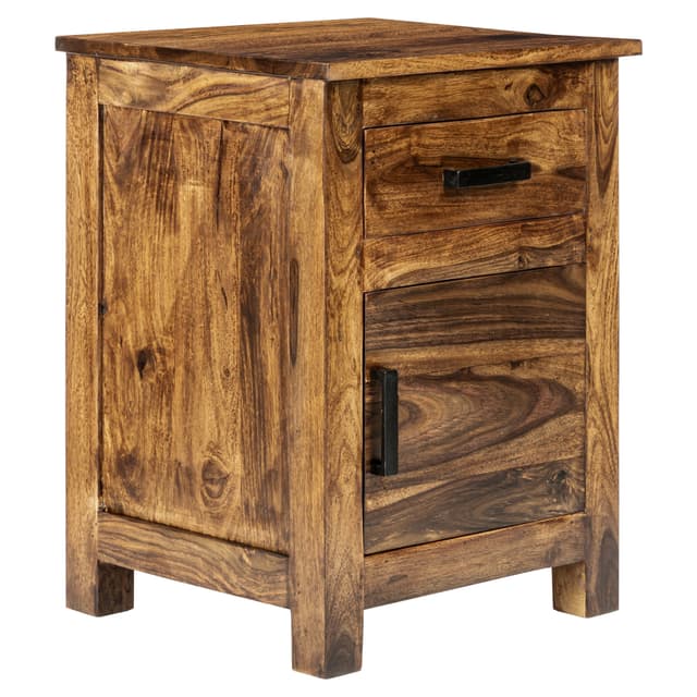 Laadukkaasta sheesham-puusta valmistetulla WOMO-DESIGNin Medan-yökonsolilla on luonnollinen ja tyylikäs luonne. Sivupöytänä monikäyttöinen konsoli, jossa on tukeva laatikko ja säilytyslokero, sopii myös eteiseen, ruokasaliin, olohuoneeseen ja moniin muihin huoneisiin.