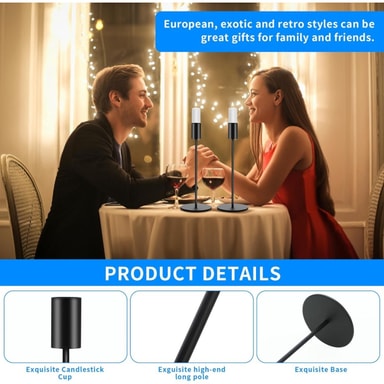 Helppo koota ja säilyttää: Kapenevat kynttilänjalat koostuvat kolmesta osasta: pohjasta, tukitangosta ja kynttiläkupista. Nämä komponentit voidaan helposti koota kohdistamalla liitännät ja kiertämällä niitä myötäpäivään. Työkaluja ei tarvita, mikä tekee asennusprosessista nopean ja yksinkertaisen. Kun kynttilänjalat eivät ole käytössä, ne voidaan purkaa kätevää säilytystä varten, mikä säästää tilaa ja pitää kotisi järjestyksessä. Tämä ominaisuus on erityisen hyödyllinen niille, jotka nauttivat kausiluonteisesta sisustuksesta tai joilla on rajoitetusti säilytystilaa, tarjoten käytännöllisen ratkaisun sekä asennukseen että siivoukseen.