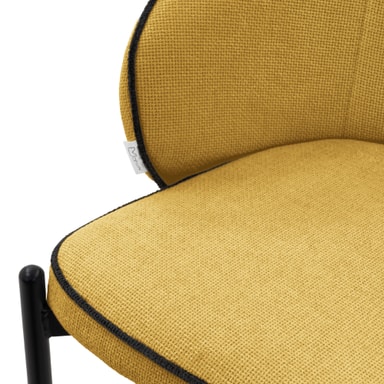 Tekniset tiedot Materiaali: Verhoilu 100 % polyesteriä, pehmuste vaahtomuovia Runko ja jalat: Teräs, musta jauhemaalattu Väri: Sinappi Mitat (LxKxS): 50 cm x 101 cm x 54 cm Istuinkorkeus: 76 cm Istuinsyvyys: 41 cm Selkänojan korkeus: 28 cm Selkänojan leveys: 50 cm Selkänojan leveys: 50 cm Jalkatuen korkeus: 30 cm Jalkojen paksuus: 2,2 cm Paino: noin 6,7 kg (per jakkara) Maksimikantavuus: 110–120 kg