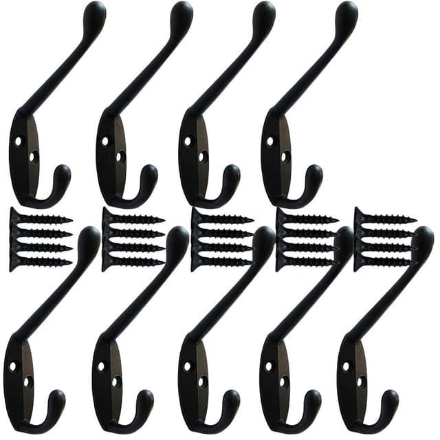 Korkealaatuinen materiaali: Valmistettu hyvälaatuisesta sinkkimateriaalista, vahva ja luotettava. Se on täydellinen lisä kodin tai toimiston tavaroihisi ja helpottaa niiden löytämistä. Nämä kaksoiskoukut ovat hyvä tapa säilyttää takkejasi.