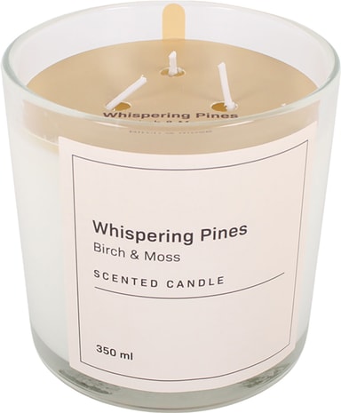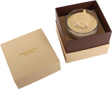 Home Whispering Pines -tuoksukynttilä tuoksuu virkistävältä metsältä, jossa sekoittuvat kuusenpihka ja eukalyptus, rikastettuna mirhalla ja sahramilla sekä pohjana patsuli, nahka ja oud-puu.Tutustu ominaisuuksiin