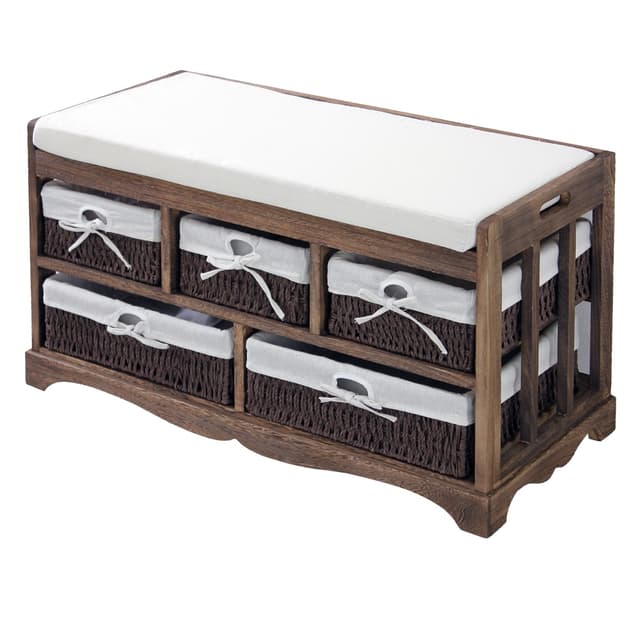 Ominaisuudet: Pukeutuja säilytystilaa ja istuimet Käytännön rintaan pehmustettu paikkainen, sali Suuret ja mukava istuintyyny Varasto esim. Kengät tai lisävarusteita Maa-tyyliin luonnonmateriaaleista 2 suuri ja 3 normaali laatikkoa maissi punosta Korit kangas