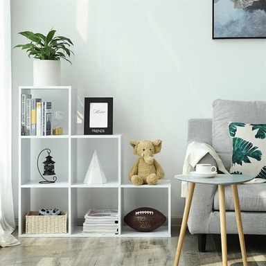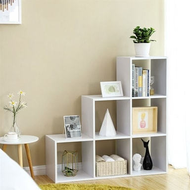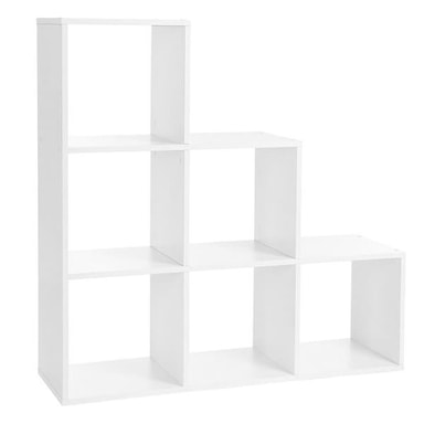 • Kirjahylly porrasmaisessa muotoilussa, jossa on 6 lokeroa - Valkoinen
