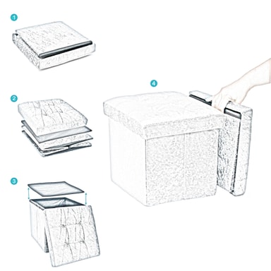 Moderni ja yksilöllinen muotoilu monitoimilaitteella. Tämä kaunis järjestelylaatikko varmistaa, että sisältö säilyy aina turvallisesti ja siististi ja tarjoaa myös lisäistuimia. Säästät tilaa, mutta voit myös tarjota vieraillesi tämän epätavallisen ja vaikuttavan istumavaihtoehdon. Mukana tulevan kannen ansiosta tavarasi pysyvät lisäksi suojassa pölyltä ja lialta. Pidä tavarasi aina hyvin säilytettynä ja täydellisesti järjestyksessä tämän kauniin kuutioistuimen avulla!